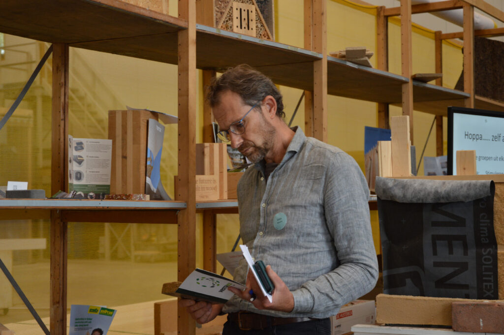 De aanwezigen hadden de unieke kans om alle biobased materialen in onze eigen materialenbibliotheek van Karbouw van dichtbij te bekijken. Dit was een perfecte gelegenheid om de verschillende soorten isolatiematerialen fysiek te ervaren en te zien hoe ze zich verhouden tot traditionele isolatieopties. In de bibliotheek konden de deelnemers voelen, ruiken en zelfs testen hoe deze natuurlijke materialen hun werk doen in echte bouwomstandigheden.