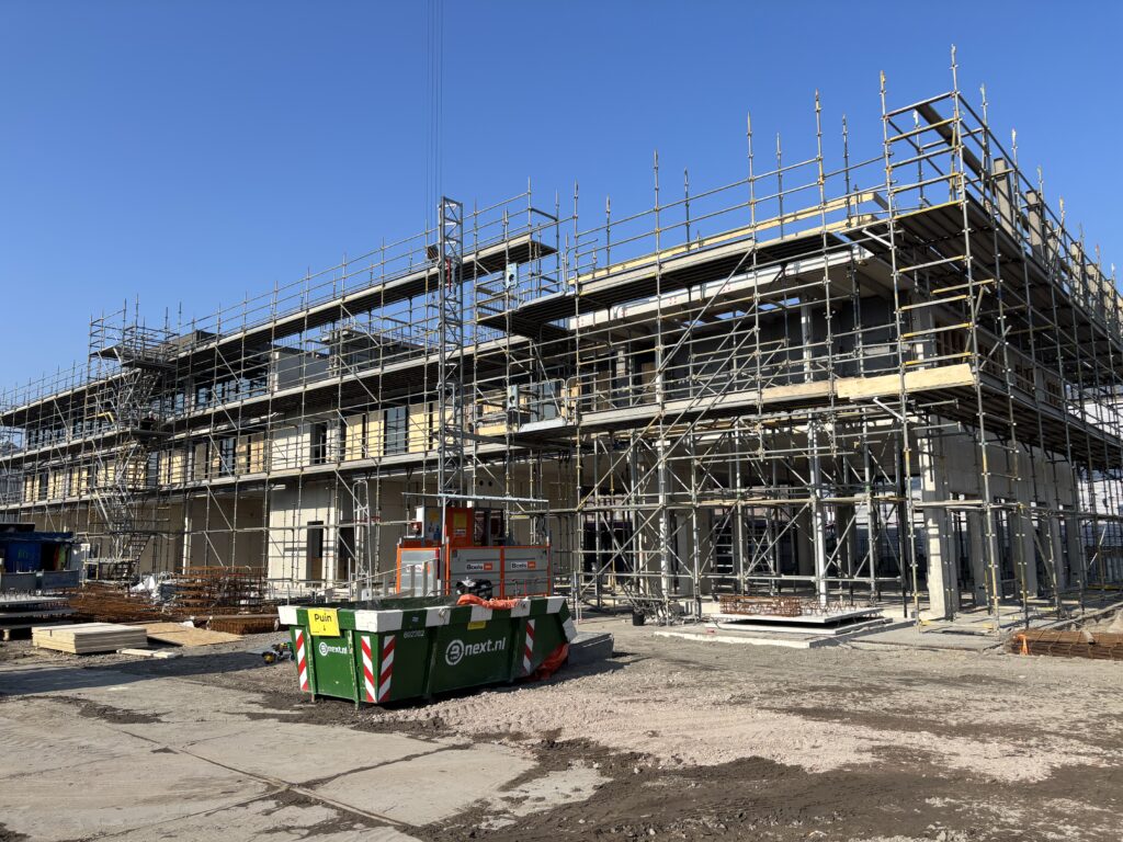 Ook bij hotel B is de voortgang duidelijk zichtbaar. De wanden van de begane grond zijn inmiddels gestort, waarmee een belangrijke fase van de ruwbouw is afgerond.