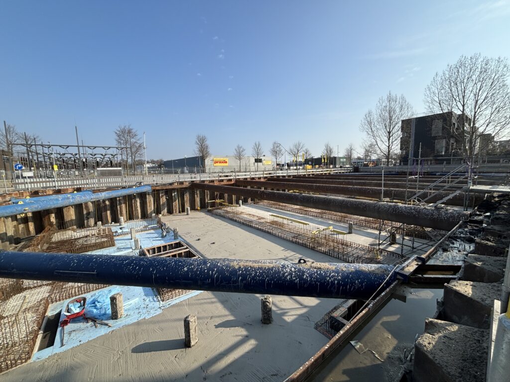 Bij hotel C ligt de focus momenteel op de werkzaamheden onder maaiveld. Hier wordt gewerkt aan de voorbereidingen voor de keldervloer. Een deel van de wapening voor deze vloer is inmiddels aangebracht, waarmee de basis wordt gelegd voor de verdere opbouw van het gebouw.